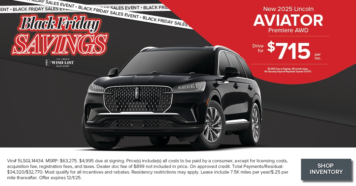 Vin# 5LSGL14434. MSRP: $63,275. $3,595 due at signing. Price(s) include(s) all costs to be paid by a consumer, except for licensing costs, acquisition fee, registration fees, and taxes. Dealer doc fee of $899 not included in price. On approved credit. Total Payments/Residual: $34,320/$32,770. Must qualify for all incentives and rebates. Residency restrictions may apply. Lease include 7.5K miles per year/$.25 per mile thereafter. Offer expires 12/1/25.